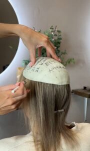 So you’re excited to learn more about Hair Replacement for HER? We’re thrilled to help! First things first – please fill out our consultation form so we can understand your needs and make sure this is a perfect fit. Once we’ve got your details, we’ll invite you in for a measurement and chat about pricing. It does cost more than a mesh integration because it’s completely bespoke, but trust us- it’s worth every penny!